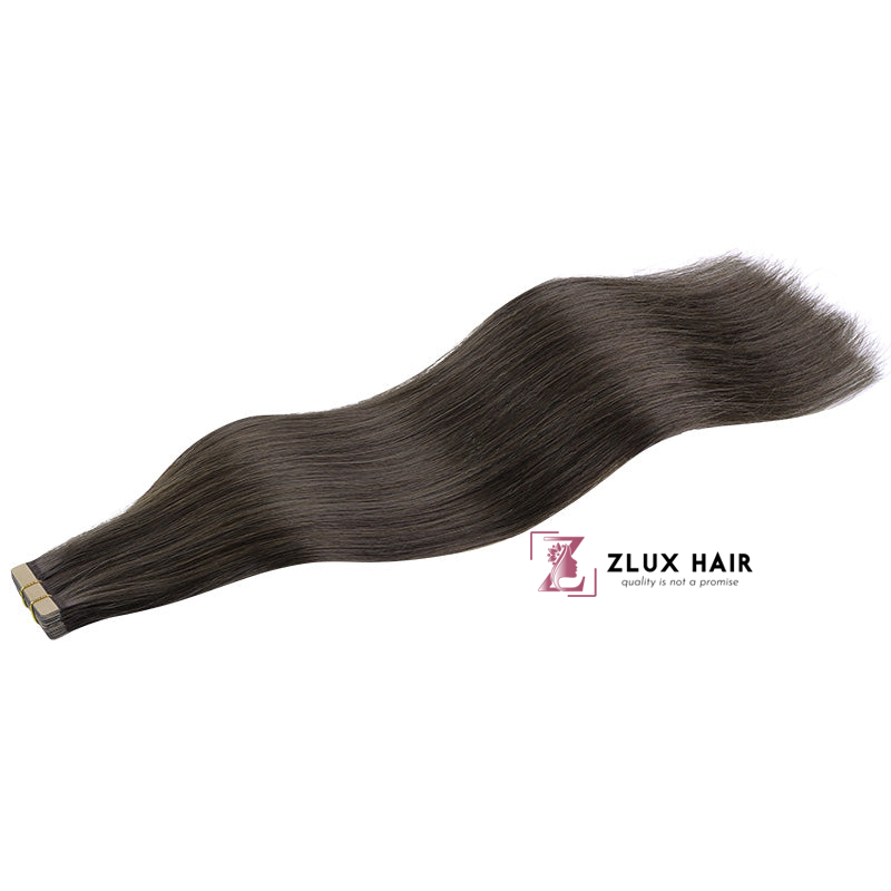 Once fitted ZLUX HAIR tape in hair extensions should last between 8-10 weeks before needing to be re-positioned. With our tape in hair extensions human hair, you can achieve any style you like, whether you want a sleek ponytail or a full body blowout. You can also wash, cut tape in hair extensions just like your own hair. And, as well as their versatility, style and ease, ZLUX HAIR hair tape in hair extensions are the least damaging type of semi-permanent extensions and are very discreet as they lay flat to your head.